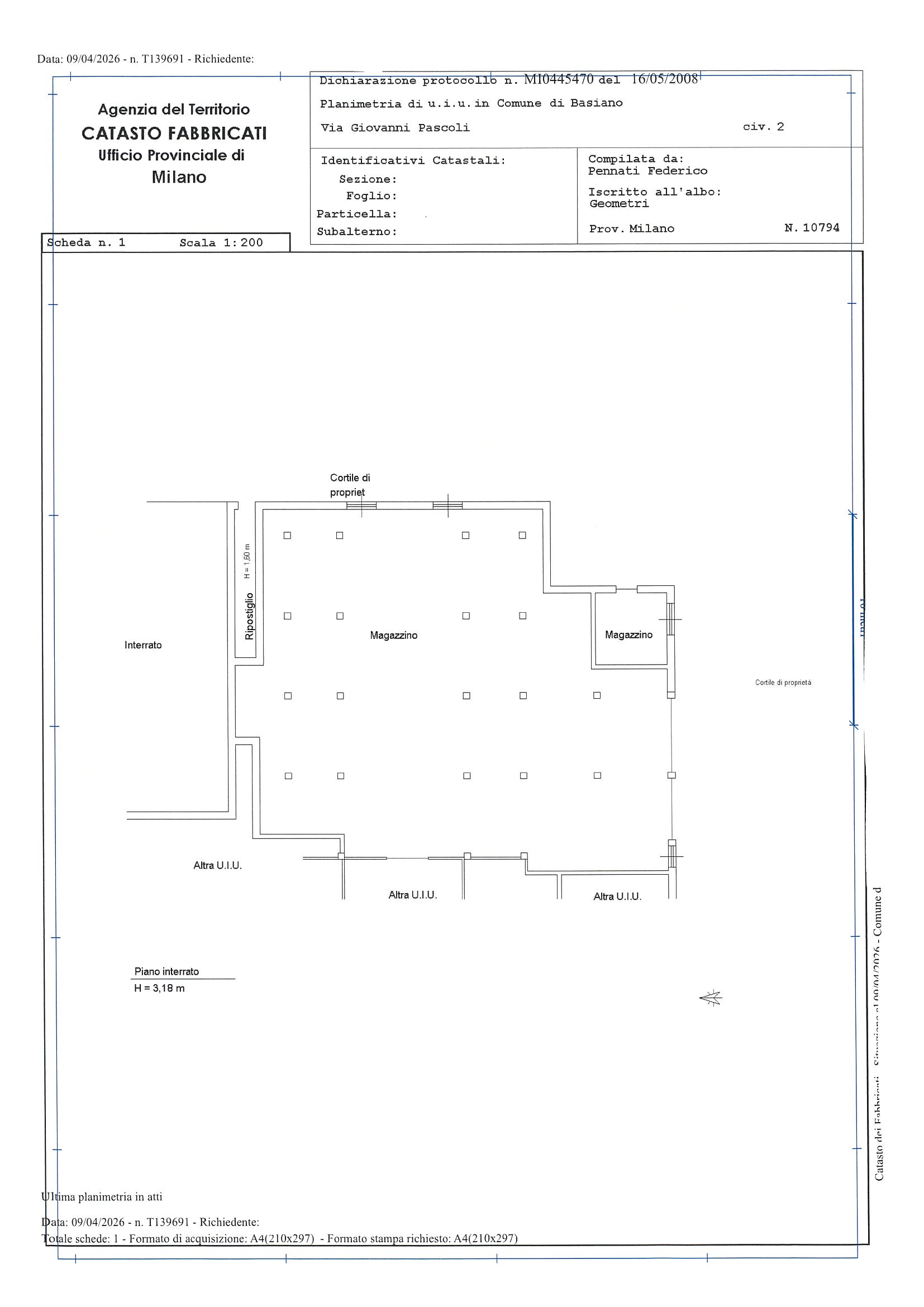 Piano interrato: 141 mq, con capacità fino a 8 auto